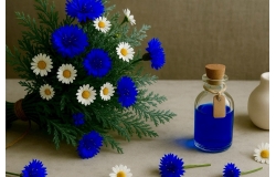 2. 摩洛哥藍艾菊 (迅捷降溫型) · 能量特質:清冽直接,如消防降溫 · 香氣特徵:微涼感藥草香與果香交織 ·特別適合 : ➤ 急性過敏發作,如鼻子過敏、蕁麻疹等。 ➤ 皮膚突發紅腫熱痛,或曬後灼傷。 ➤ 劇烈焦慮恐慌需立即緩解時。