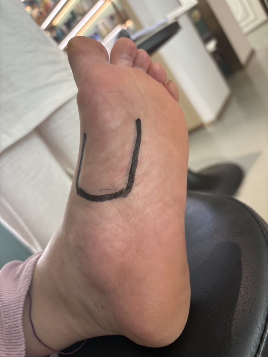 一位來自當地的高中歷史老師,主動提供雙足作為示範個案。他提到自己長期熬夜備課與批改作業,視力逐漸模糊,且時常感覺眼壓沉重。