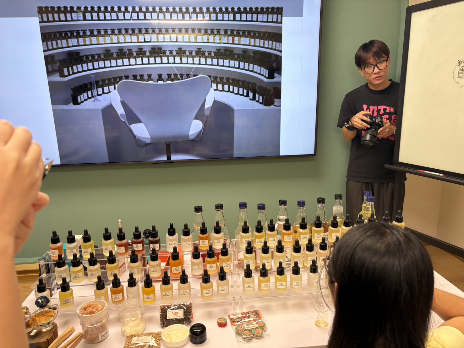 精油香水調製與仿香實作,特別精選中東經典名作《一千零一夜》作為靈感主軸。老師示範以天然精油模擬千夜異域香氣,過程中不僅涵蓋調香技術的講解,更深入解析芳香分子結構如何影響嗅覺情緒。